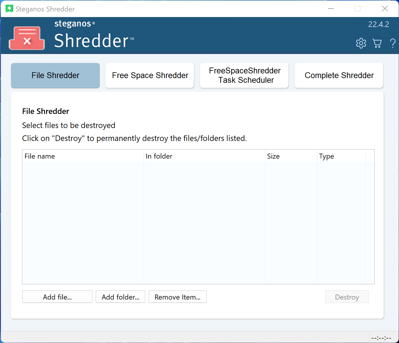 Securely delete files with no way for anyone to recover them - and wipe your HDD or SSD's free space.Screenshots